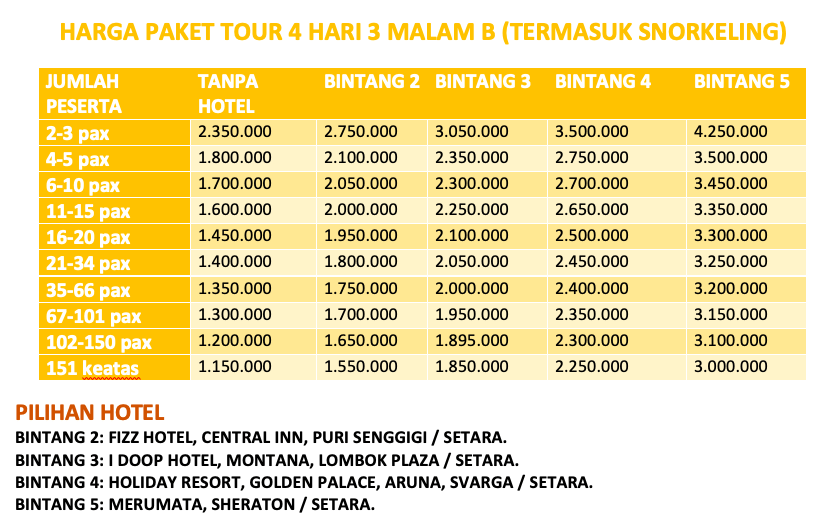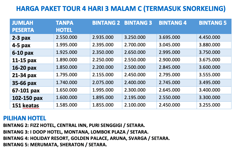 Paket Tour Lombok 4 Hari – 3 Malam option (C)